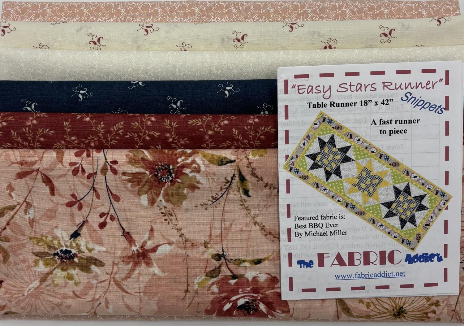 This kit features fabrics from the Sandalwod fabric collection by 3 Sisters and pattern by the Fabric Addict. All fabrics for the top and binding are included. Finished size: 18" x 42"