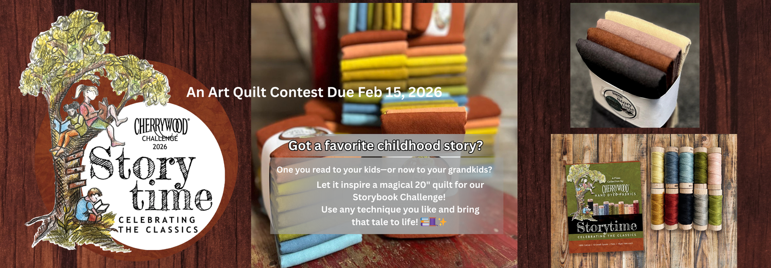 The entire quilt top and binding must be made from Cherrywood Hand Dyed Fabric. Using ALL the colors from the 8-step Storytime bundle is encouraged. (The backing and/or facing does NOT have to be Cherrywood.)