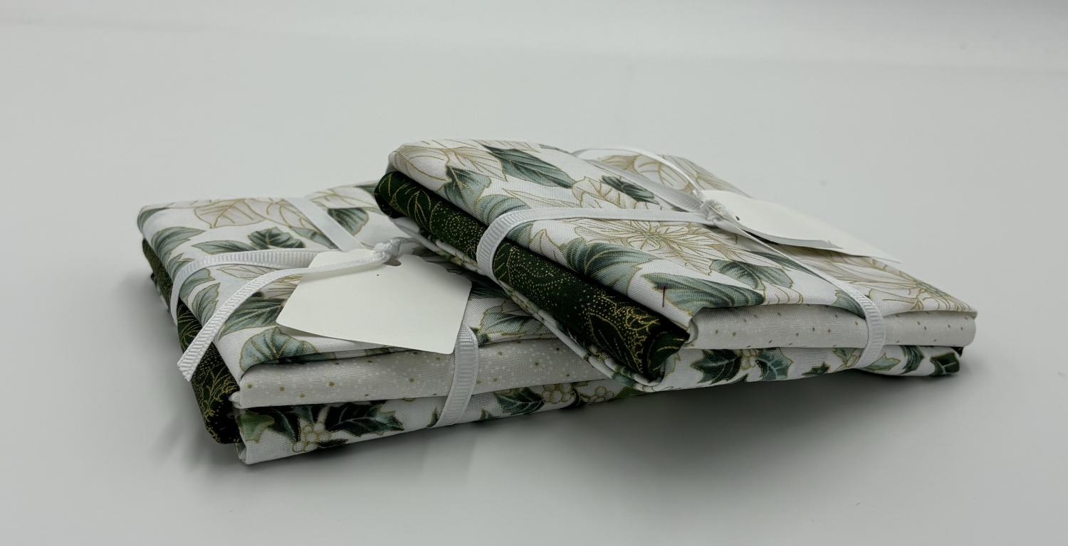 4 Fat Quarters from the Christmas Splendor collection in Holly & Gold by Hoffman. 100% cotton