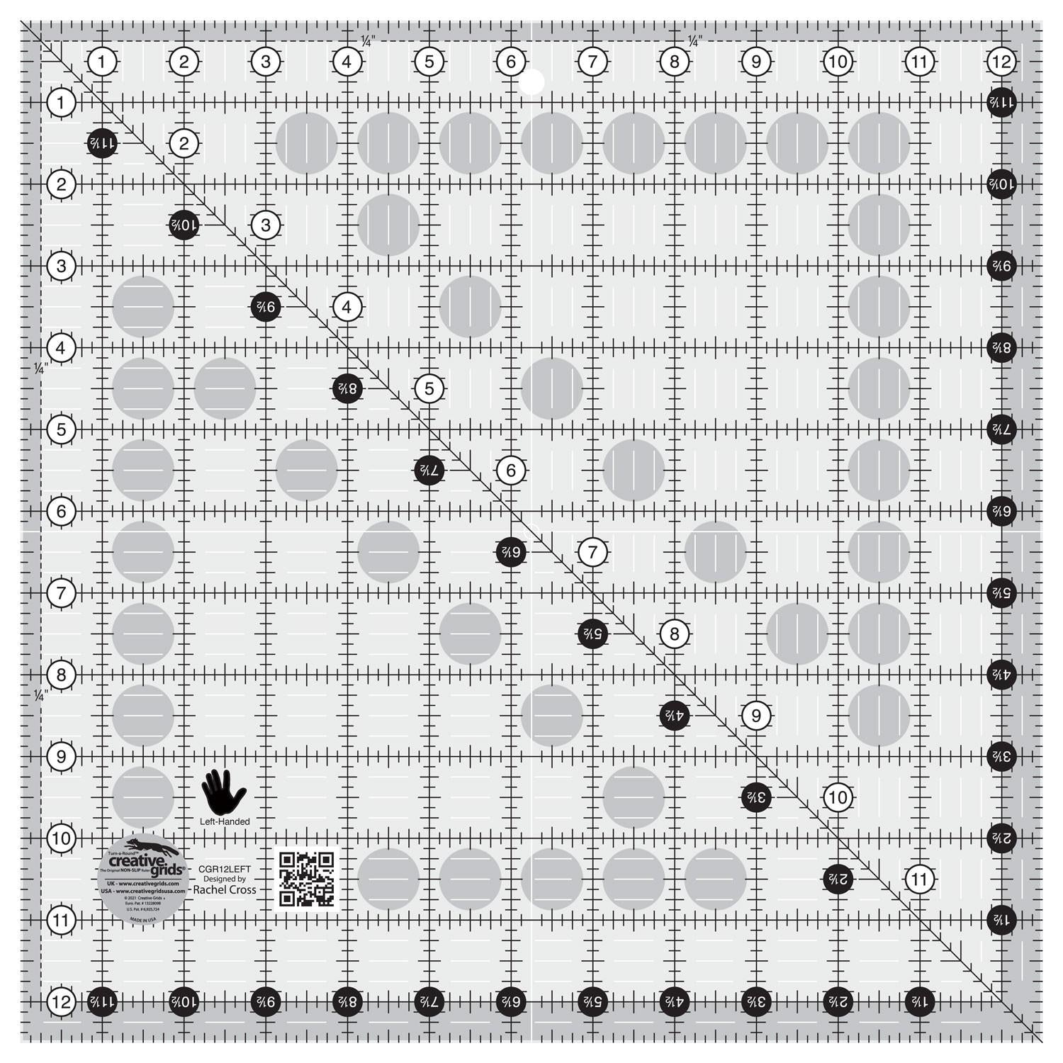 Introducing the first truly left-handed square rulers on the market! Now you can experience all of the great features of one of the most popular Creative Grids squares, but printed specifically for lefties!