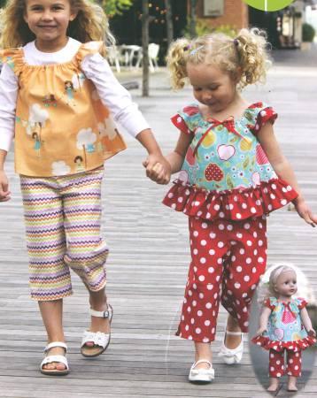 Discover the perfect ensemble for your little one with this adorable set designed for children sizes 2-8 and their 18-inch dolls. This charming outfit features a vibrant orange top with playful fairy illustrations, paired with colorful, zigzag-patterned pants for a fun and whimsical look. The second outfit showcases a delightful red and turquoise top adorned with hearts and cherries, matched with red polka dot pants for a sweet and stylish appearance. Both sets come with matching doll outfits, ensuring your child and their doll can coordinate in style. Ideal for playtime, dress-up, or special occasions, these outfits are crafted to bring joy and imagination to every moment.