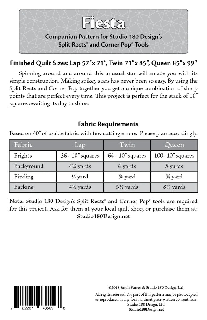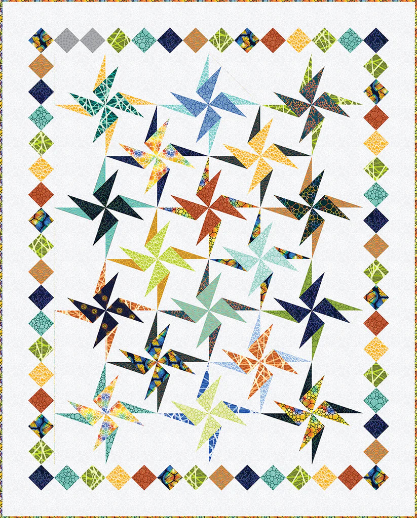 Olé! Spinning around and around this unusual star will amaze you with its simple construction; making spikey stars has never been so easy! By using the Split Rects and Corner Pop together you get a unique combination of sharp points that are perfect every time. This project is perfect for the stack of 10” squares awaiting its day to shine.