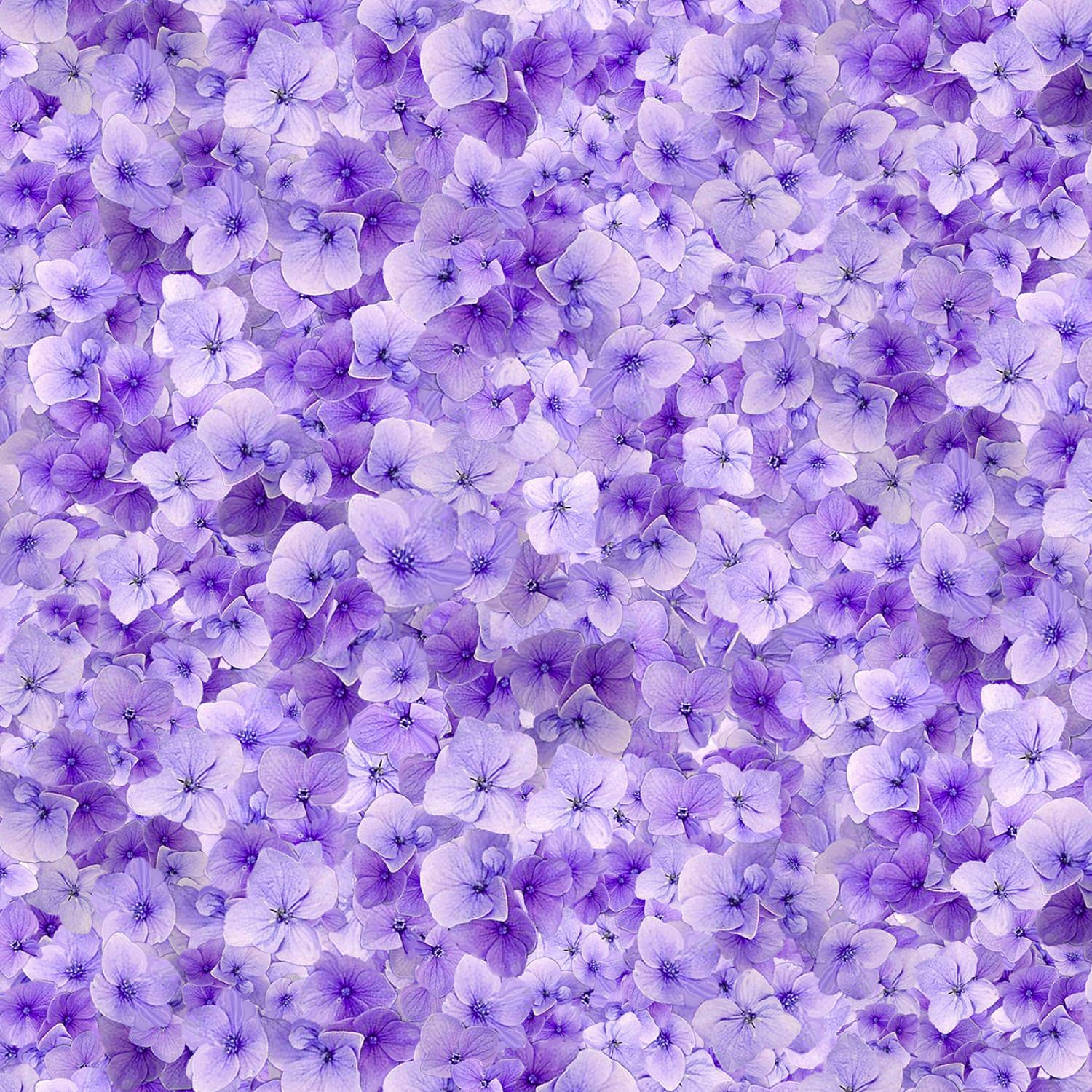 This exquisite fabric features a delicate and enchanting pattern of lilac viola flowers, creating a serene and romantic atmosphere. The design is composed of numerous small, detailed floral motifs in various shades of purple and lilac, giving it a lush, garden-like appearance. Ideal for creating garments, home decor, or crafts, this fabric brings a touch of nature's beauty to any project with its soft and soothing aesthetic. By Timeless Treasures 100% cotton digital print, 44/45" wide
