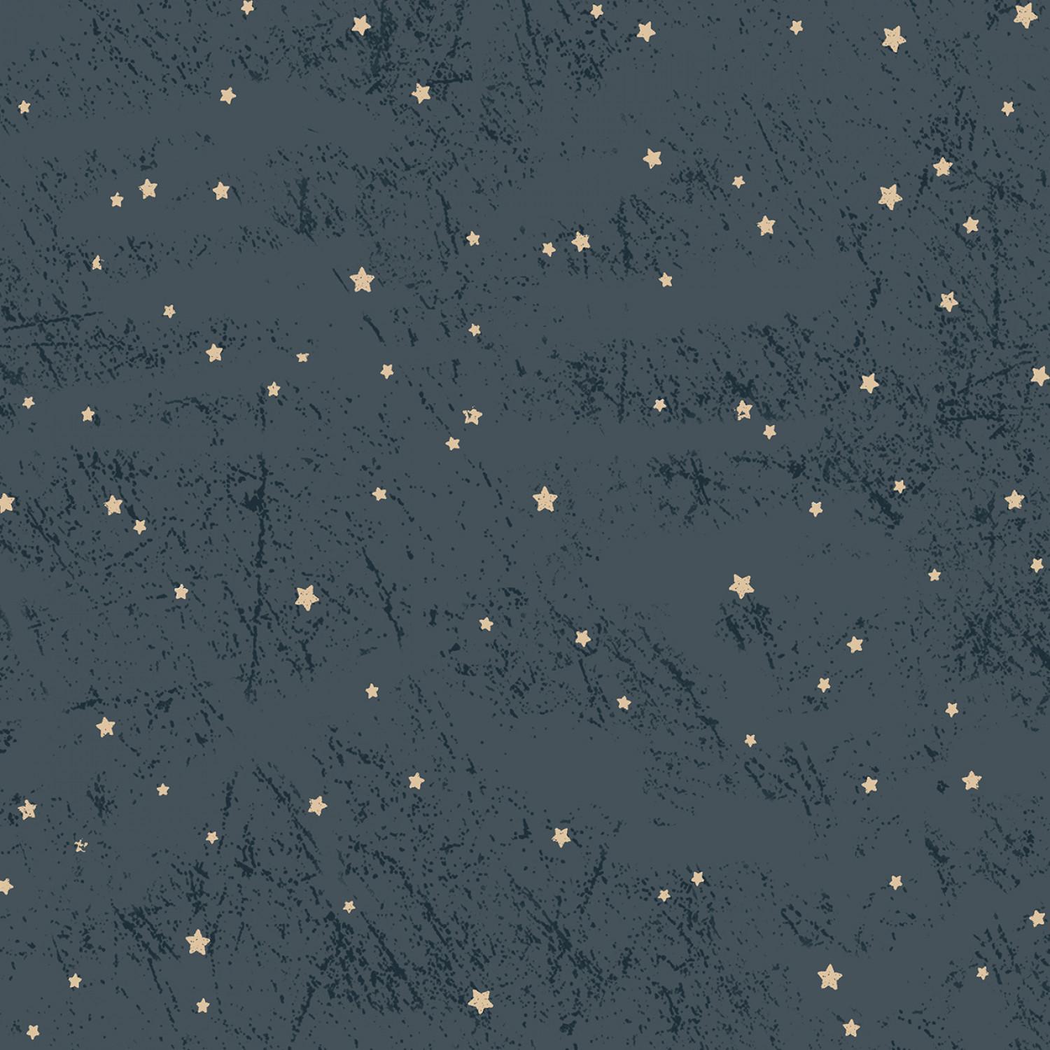 This fabric features a charming design of light beige stars scattered across a dark navy background, giving it a celestial, night-sky feel. The texture of the fabric adds a rustic charm, enhancing the starry pattern with a slightly distressed look. Ideal for creating cozy flannel shirts, pajamas, or even quilt backs, this fabric brings a touch of the cosmos to your sewing projects. 100% cotton, 44/45" wide
