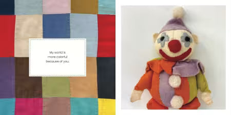 • Each spread pairs a tender line of an original friendship poem with a vintage quilt and a beloved fabric character
