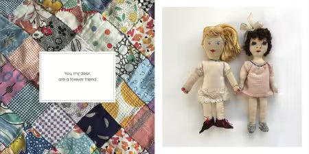 A keepsake gift book celebrating the timeless bonds of friendship, featuring a heartfelt verse paired with photos of heirloom quilts and irresistible, vintage fabric dolls, plus dedicated space for personalizing with cherished memories and a QR code that links to doll patterns and other bonus content. Watch product video below to see inside the book.