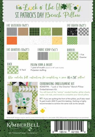 With wee folk, wishes, and decorative stitches, our Luck o’ the Gnome: St. Patrick’s Day Bench Pillow has “all the joy your heart can hold!” Leprechauns with wooden noses and knobbly knees wear hats of sparkly Polka Dot and Applique Glitter, their legs dangling freely below them. Catch one, and he might lead you to a shimmering, Mylar rainbow and a pot of gold as Cute as a Button! Shamrocks of shiny Embroidery Leather, a golden Applique Glitter horseshoe, and a top hat brimming with flowers and ferns are sure to bring good fortune, while “Lucky” is embroidered in beautifully intricate stitching. With flying geese, pinwheel patterns, Spring Has Sprung Buttons, and Rick Rack Trim, our St. Patrick’s Day pillow is an Irish blessing for every household!