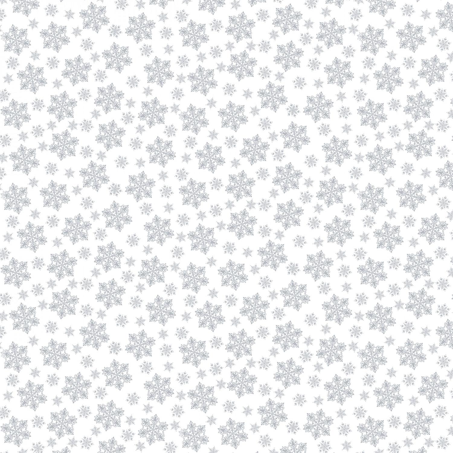 This fabric features a delicate and elegant design with medium-sized snowflakes in a white on white pattern, creating a subtle yet festive look perfect for winter-themed projects. The snowflakes are scattered across the fabric, offering a harmonious and sophisticated aesthetic that can be used for various crafting and sewing projects, enhancing the visual appeal with its understated charm. 100% cotton, 44/45" wide