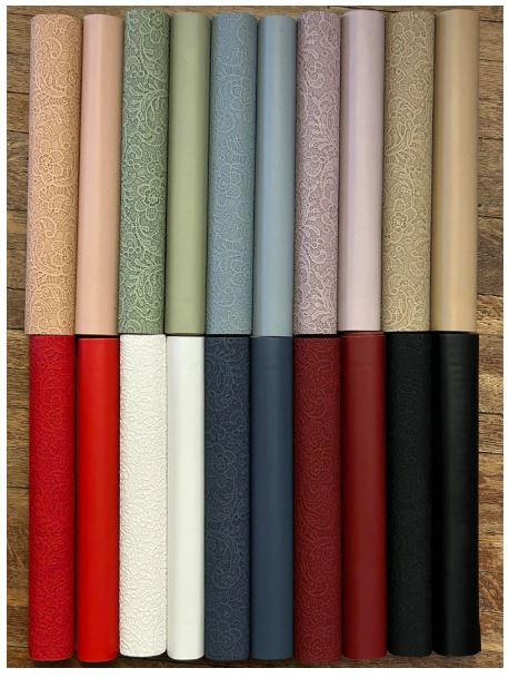 The roll measure 12x53 inches. The Solid roll has a sheen, very much like our Pearlescent Vinyl.