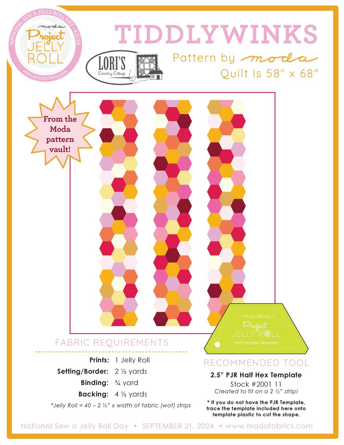 Recommended Tool: 2.5" PJR Half Hex Template (or any 2.5" Half Hex Template) * If you do not have the template, trace the template included in the pattern onto plastic to cut the shape.*
