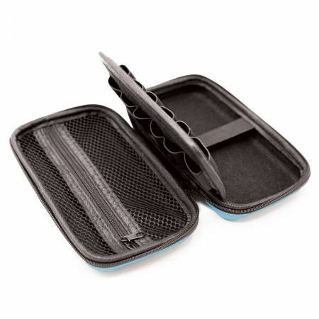 This durable hard shell case contains 12 secure slots to organize USBs, a zippered compartment, and an elastic-banded section for accessories. The perfect tool to help any stitcher stay organized! Approximate dimensions: 7.5 x 4 x 2